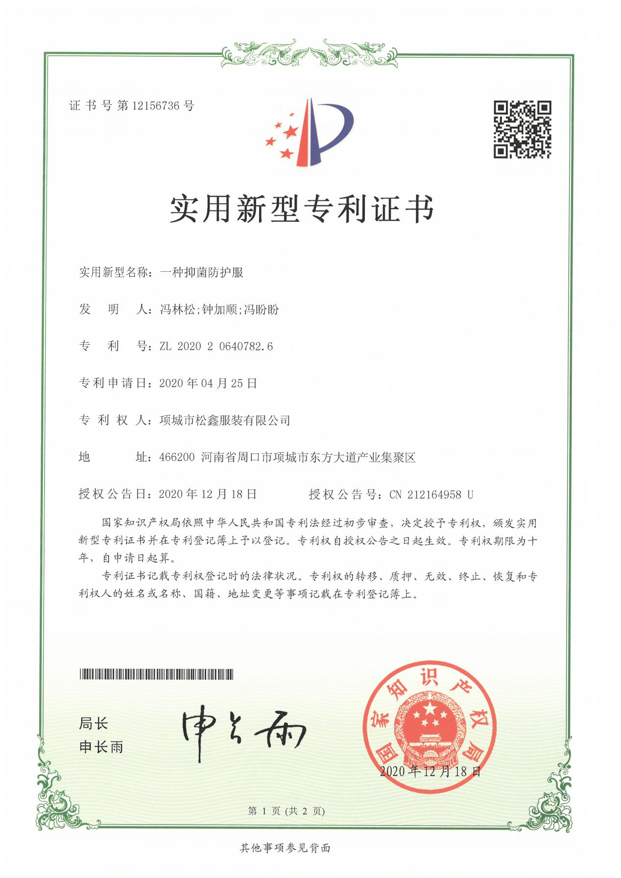 首页 >> 1 >>专利 >> 实用新型专利-一种抑菌防护服